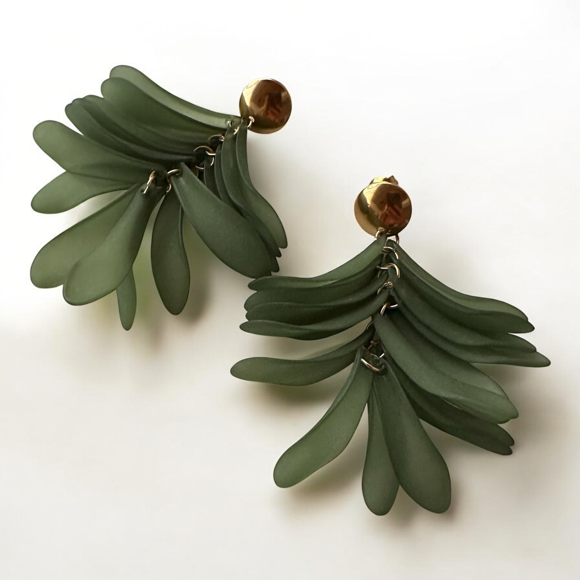 Brincos aço inoxidáve com pétalas verde seco